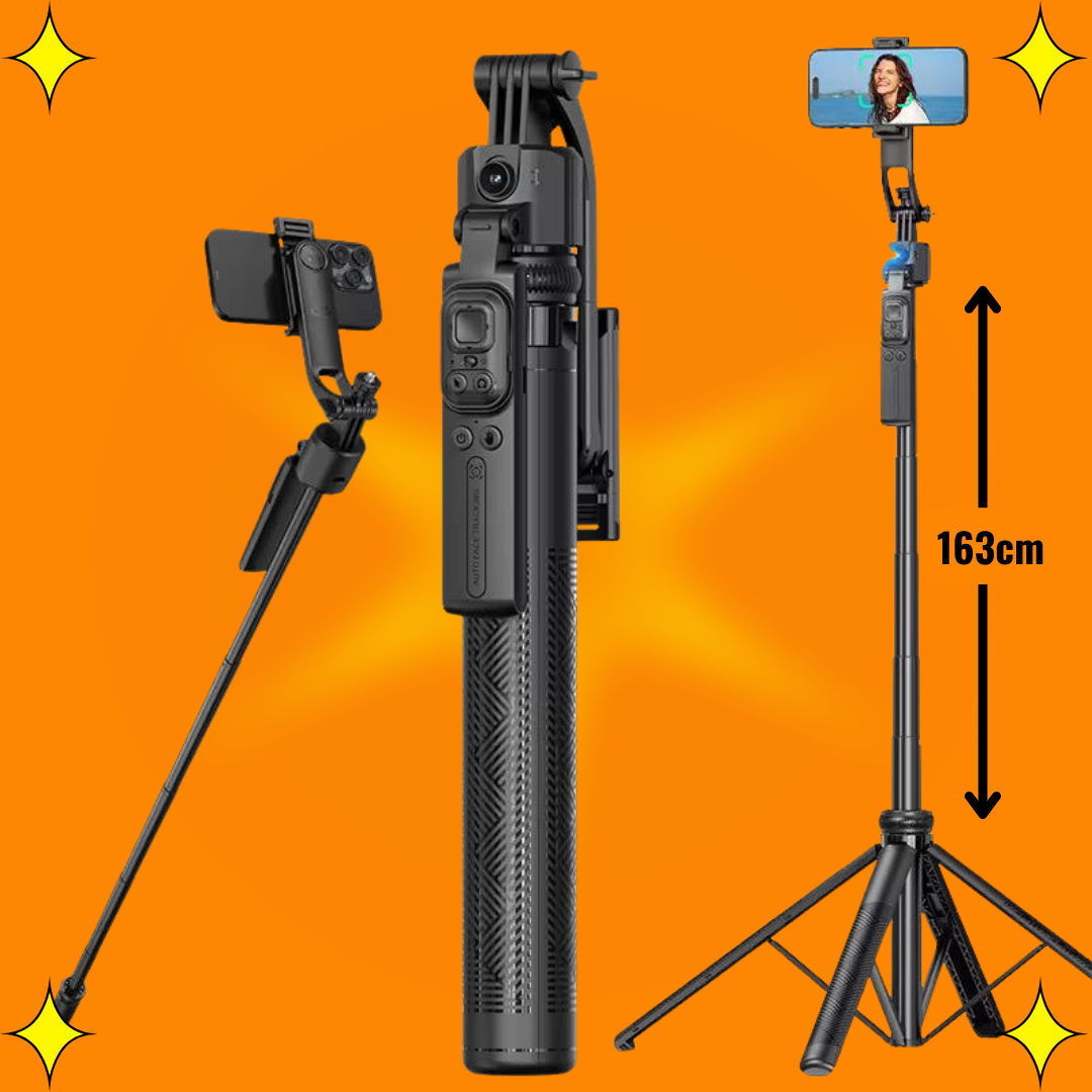 Con la tecnología de seguimiento facial inteligente, este trípode hace que tu cámara te siga como si tuvieras un camarógrafo profesional a tu lado — estable, fluido y con precisión de 360°.